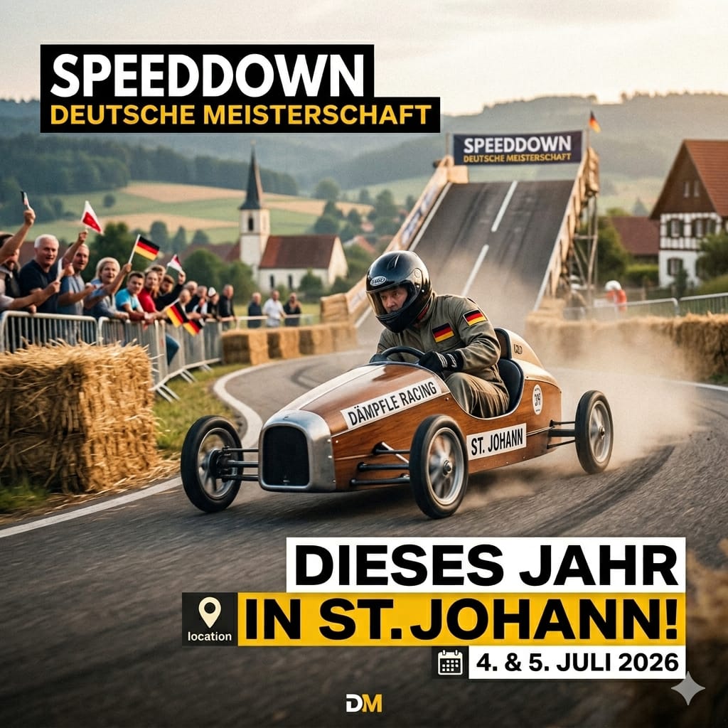 Am 4. und 5. Juli 2026 ist St. Johann zum 4. mal Austragungsort der Deutschen Meisterschaft im Speeddown! Wer Lust auf Action, Technik und ordentlich Speed hat, sollte sich das Rennwochenende nicht entgehen lassen.